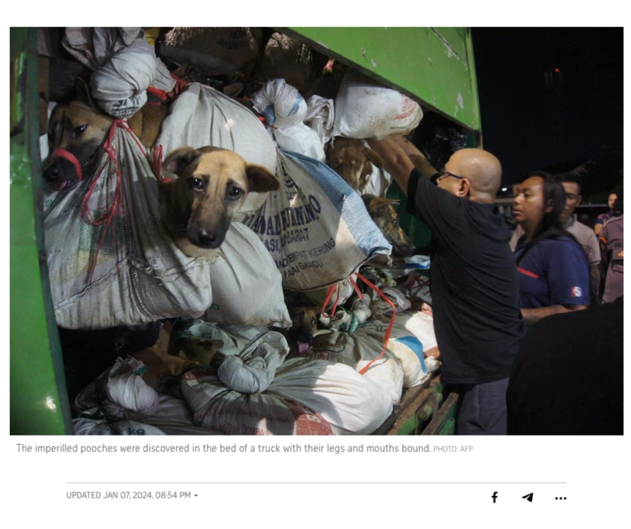 Destiné à l’abattoir pour le commerce de la viande canine en Indonésie, Ricky a été dans l’un de ces sacs…